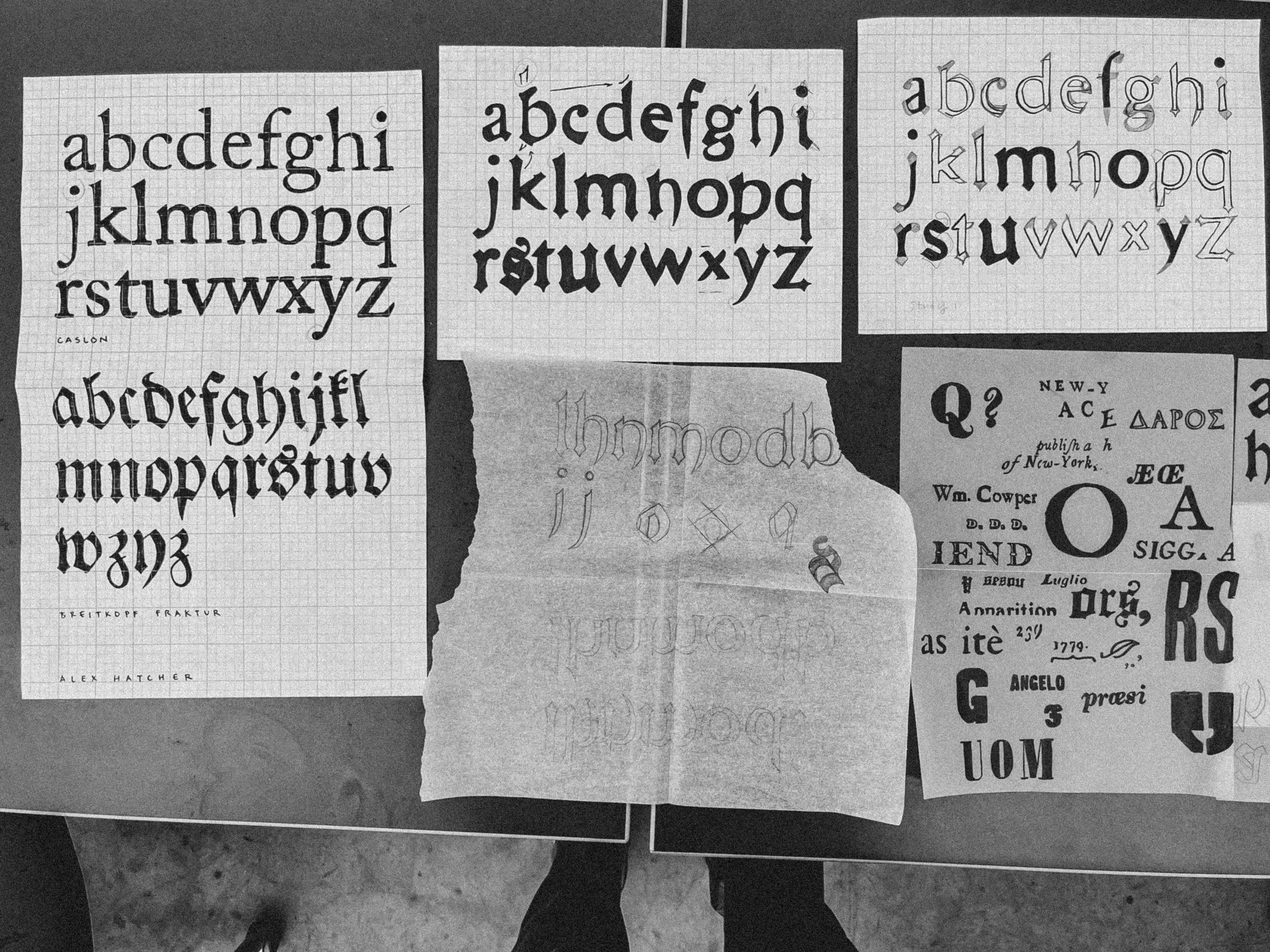 here are all the stages in between. researching type specimen dating back to the 1700s, adapting fonts through hand lettering, and the creation of the final type package.
